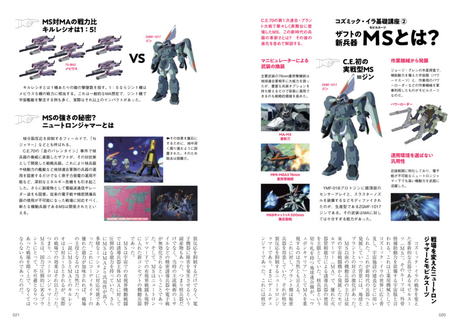 また、SEEDシリーズのモビルスーツをより深く理解するため、「年表で振り返る コズミック・イラの世界」「ザ・MSパイロットファイル」「モビルスーツ関連用語集」も掲載しています。