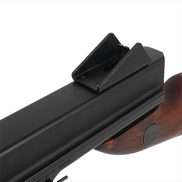 こちらのモデルとなる実銃のM1A1は、米軍向けに改良されたトンプソンM1928A1をベースに、省力化と操作性向上のために改良された戦時省力生産モデルで、第二次世界大戦を通じて米軍で最も多く使用されたサブマシンガンです。