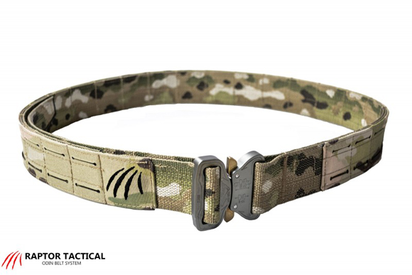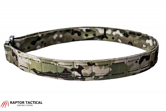 ベルトやポーチ類の他、プレキャリなども開発するRAPTOR TACTICALからは、レーザーカットによってモール用スリットを配置したODINベルトがあります。