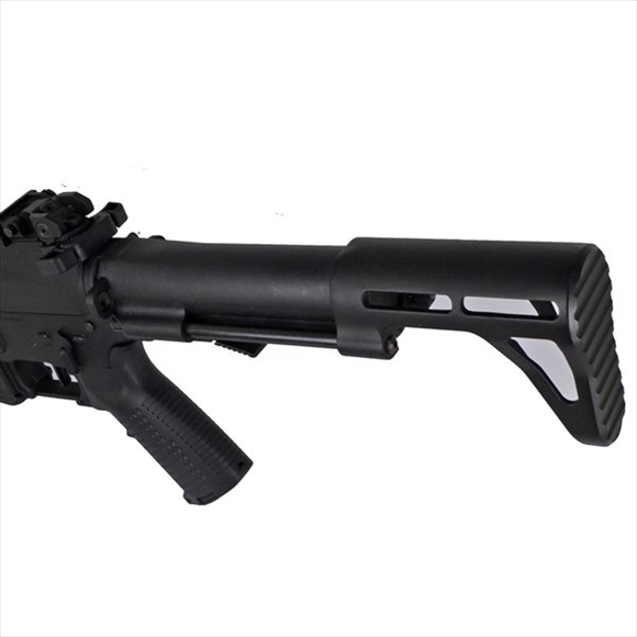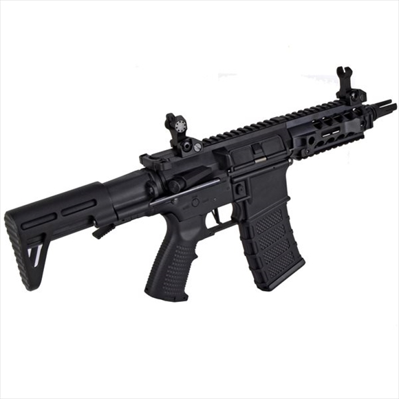 こちらはフレームやハンドガードなどの外装の殆どを樹脂にすることで軽量に仕上げ、ショートサイズで取り回しの良いM4系ライフルです。