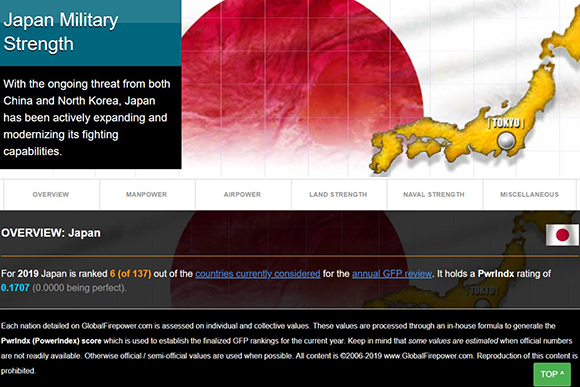 Military Strength Rankingでは現時点での世界各国の軍事力を55の要素から総合的に評価し、137ヶ国の軍事力指数を算出しています。
