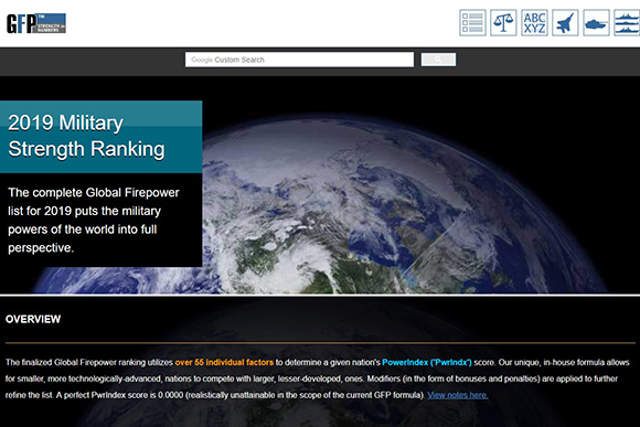 イラン情勢や北朝鮮情勢、さらには大国同士の政治的な衝突など、世界中様々な所で緊張が高まる昨今。各国の抱える状況などで日々軍事力などにも変化が見られるようで、そんな力の差をランキング形式で発表しているサイトがあります。