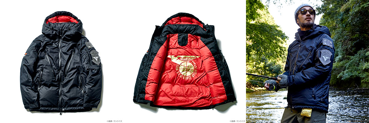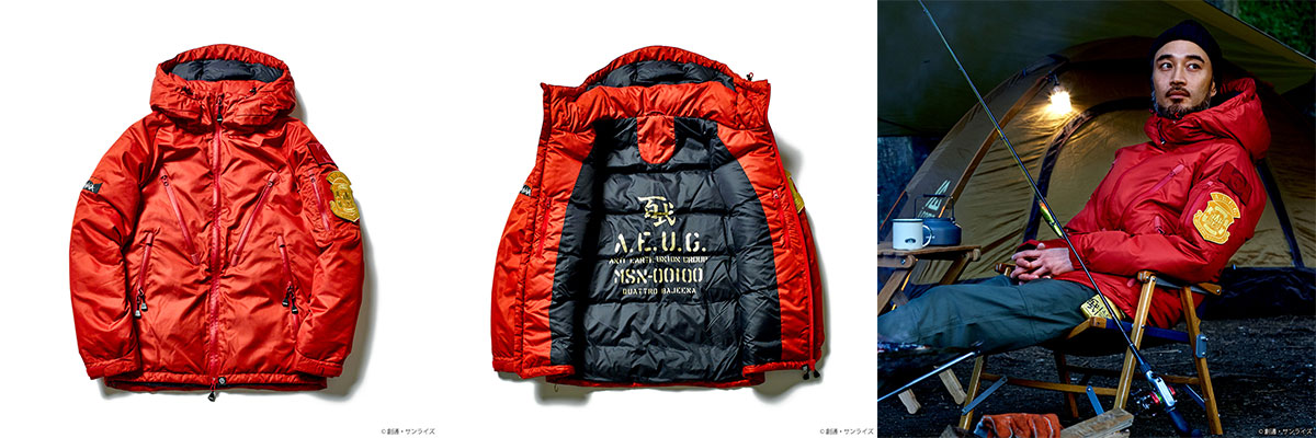 今作で5回目となる、STRICT-GとNANGAのコラボレーションによるダウンジャケットは『機動戦士Zガンダム』35周年を記念した、エゥーゴモデル/ティターンズモデル/クワトロ・バジーナモデルの全3種を展開、表地にマイクロファイバーを使用した高密度織物に撥水技術をドッキングし、ソフトでしなやかな風合いのノンコーティング耐久、撥水・透湿素材となる高性能タフタ生地H2OFFを使用。