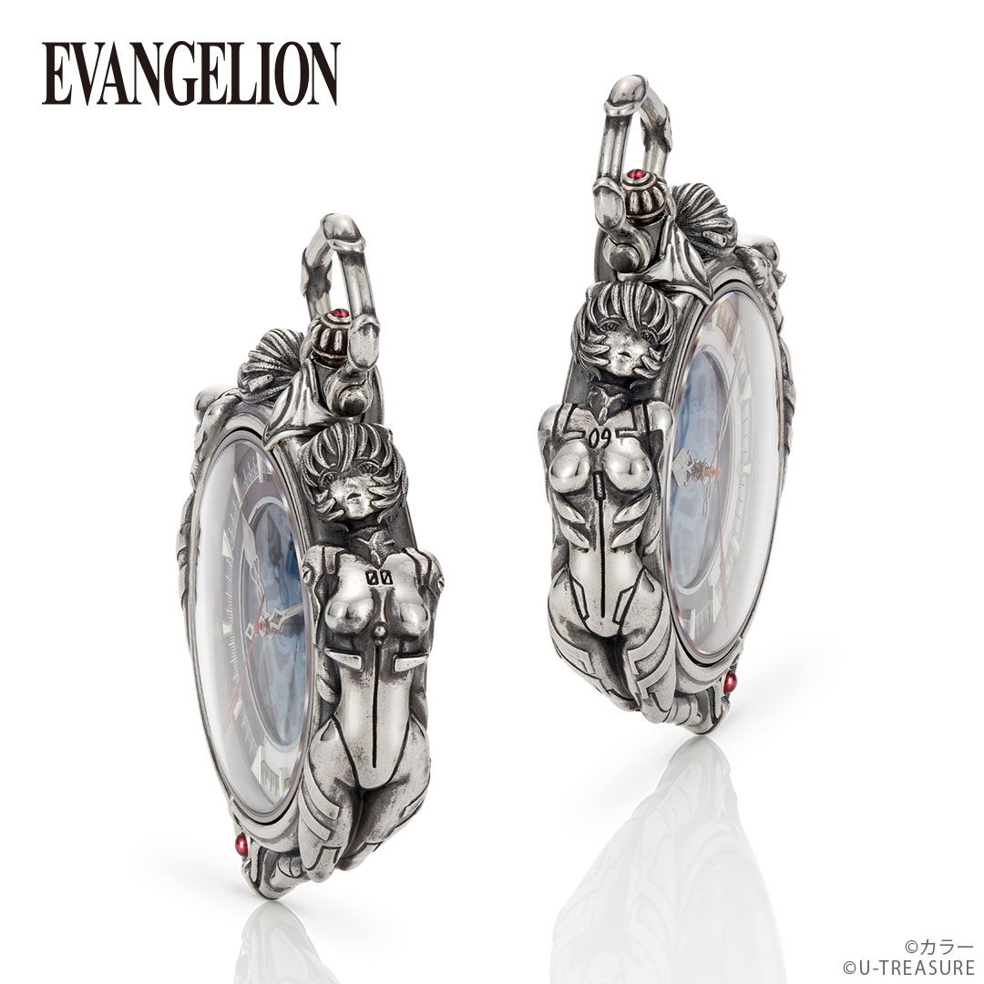 さらに、付属チェーンのカラビナに「カシウスの槍」、クリップは「ロンギヌスの槍」の造形を彷彿とする設計など、随所にEVANGELIONの世界観をデザインした懐中時計。