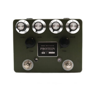 The Protein 2 in 1 Overdrive is a collaboration between David Brown and guitarist/producer Adam Sniegowski. After years on the road and in the studio using backline amps that could be very inconsistent, Adam came to Dave wanting to create a dual overdrive that would sound great with any backline he encountered. They started with two drives they loved, stacked well together, but had a few inherent issues. Dave set out to fix those issues without losing the soul of the originals.