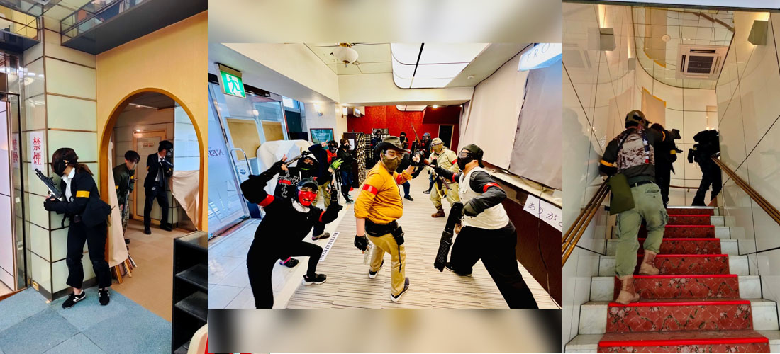 店長の納谷(ナヤ)は、3月に閉館した系列のホテルに打診をし、サバイバルゲームのフィールドとして自力で改装、当イベントの実施に至りました。