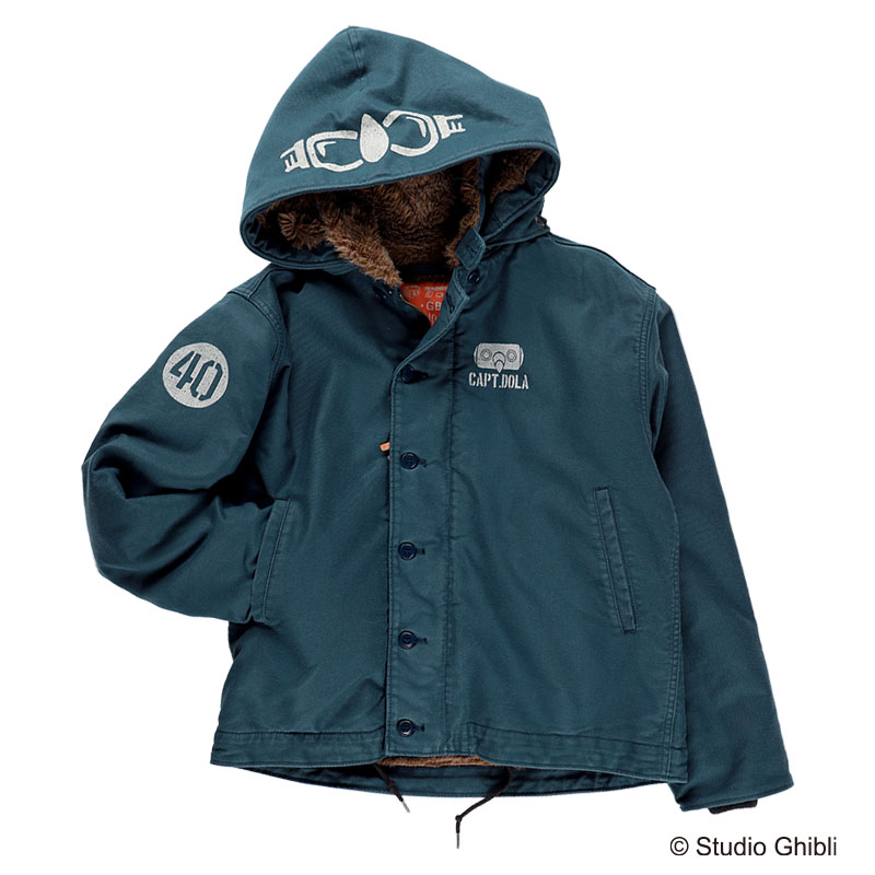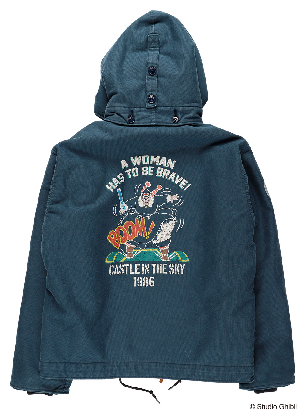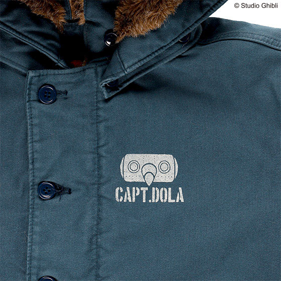 フランス海軍で採用されていた防寒性に優れたフレンチデッキジャケットに「天空の城ラピュタ」映画公開35周年の記念「キャプテンドーラ」がプリントされたモデルです。