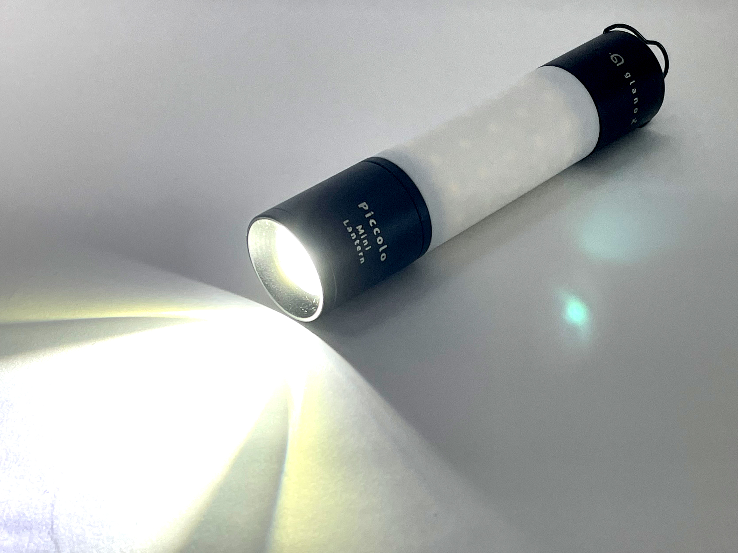 ピッコロランタンは、全長12cm/112gの小さなボディながらも360°全体を照らすランタンモードと、懐中電灯のようにスポットで照らすハンディライトモードの2つの光源を併せ持つ2Way仕様のLEDライトです。