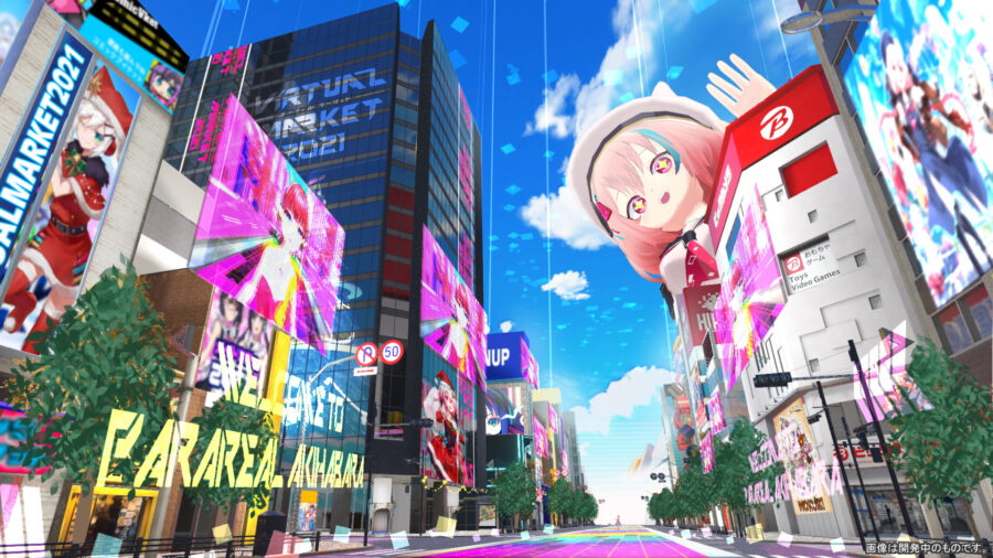 メタバース上にある会場で、アバターなどの3Dアイテムやリアル商品(洋服、PC、飲食物など)を売り買いできる世界最大のVRイベント。