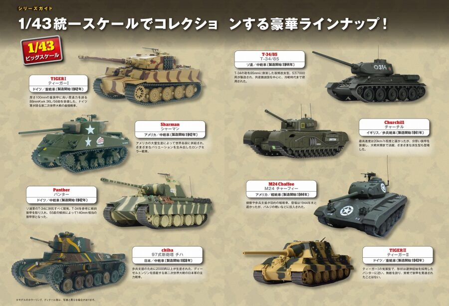 第二次世界大戦に登場した各戦車を、実機の写真とともにリーフレット形式のマガジンで詳しく解説します。