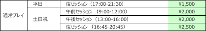 (通常プレイ:1セッション約50分・お一人様あたり)