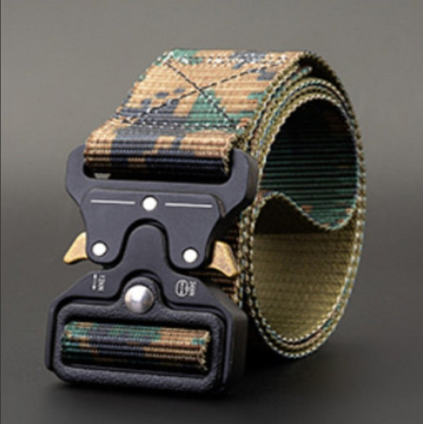このタクティカルベルトは、ベルト部分はナイロン製で、バックルの金具部分は金属で出来ているので、とても頑丈な作りになっている。