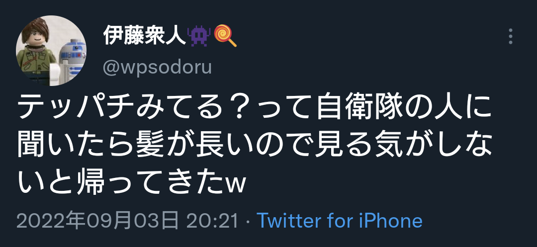引用元: 【悲報】有名監督「テッパチみてる?って自衛隊の人に聞いたら髪が長いので見る気がしないと帰ってきた」