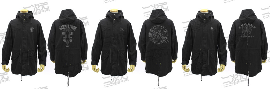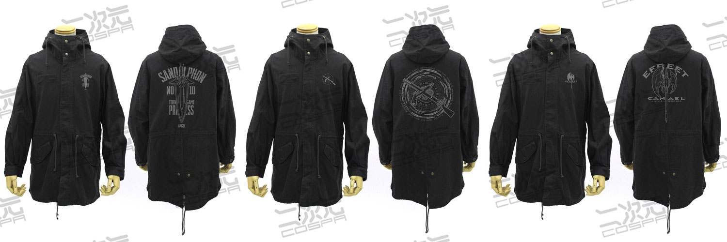 ・現代的でスタイリッシュなシルエットにこだわったコスパオリジナルのM-51ジャケットに『鏖殺公<サンダルフォン>』『刻々帝<ザフキエル>』 『灼爛殲鬼<カマエル>』 をプリント!