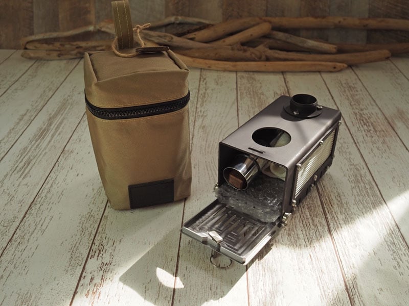 専用ポーチの中に煙突を含めた部品が全て本体に収納可能です。
