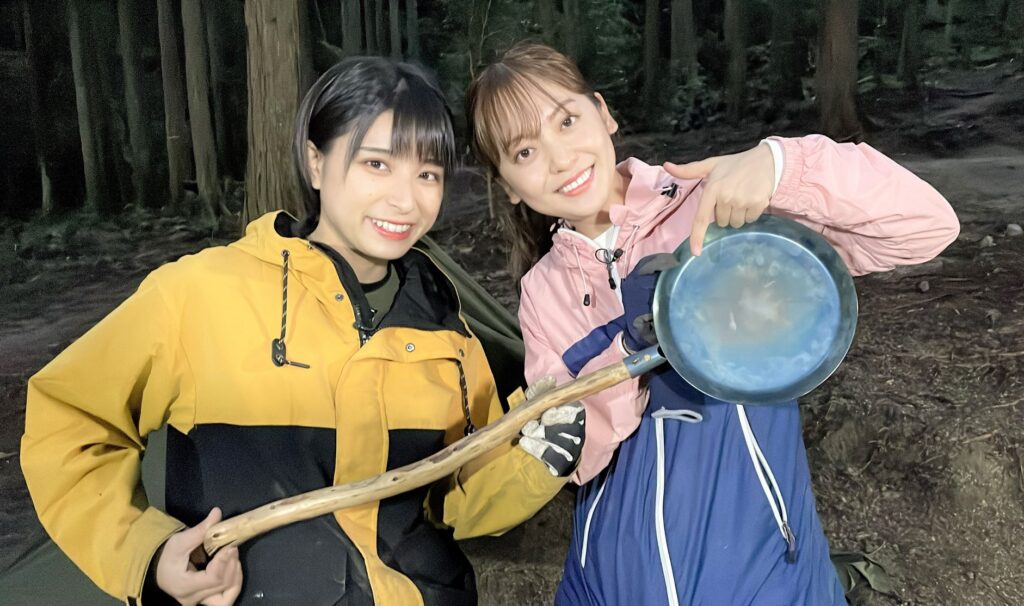 収穫した天然キノコをはじめ、旬の食材を集めたキャンプ飯作りでは、かほなんのサバイバル術が続々登場!現地で調達した竹筒を使ってご飯を炊いたり、枝を削ってフライパンの柄を作り、巨大ステーキを焼くなど、ワイルドなアウトドア料理を披露。焚き火を見ながら繰り広げられる女子トークにも注目だ。