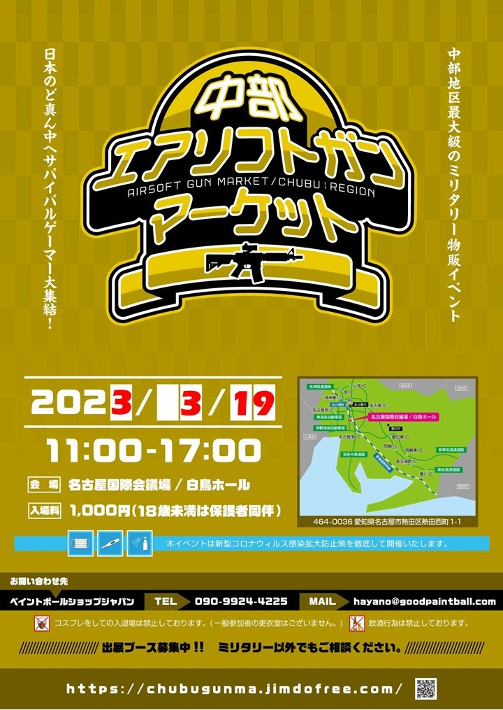 名古屋最大級のエアソフトガン、ミリタリー関連商品展示即売会「中部エアソフトガンマーケット」の第4回目が2023年3月19 日(日)に開催されることになりました。