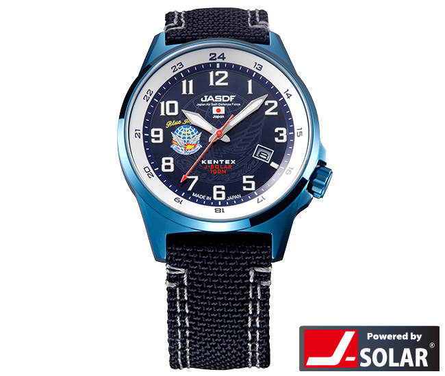 ブルーインパルスは、航空自衛隊第4航空団に所属する、日本で唯一のアクロバット飛行隊。ケンテックスでは2004年より航空幕僚監部協力の下、ブルーインパルスシリーズの腕時計を継続的に開発しており、製品は防衛省共済組合登録商品として、日本全国約270か所の自衛隊駐屯地、各基地において自衛隊員向けに取り扱われているほか、一般販売も行われています。