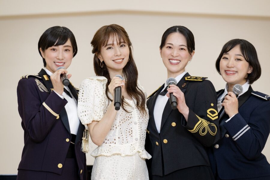 May J . と陸・海・空各自衛隊のボーカリストが航空自衛隊航空中央音楽隊の新庁舎へ集結し、多くの国民の前で『君が代』を独唱したという共通の経験をした者だけが感じる「音楽の力」を語り合いました!