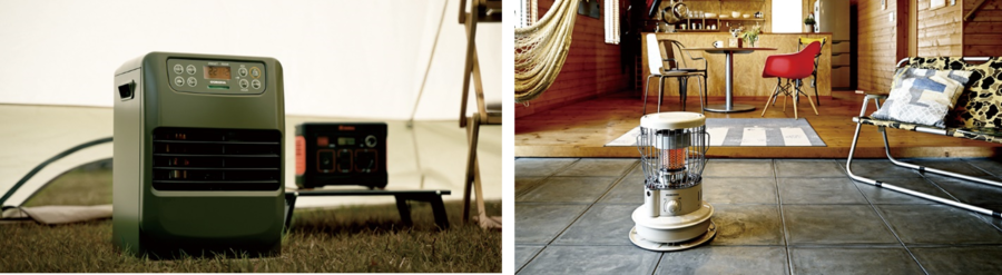 ※2 運転開始から強火力で3時間使用すると約60Whの電力を消費しますので、電源容量540Whのポータブル電源に本製品を単独で接続した場合、約27時間燃焼することが可能です。ただし、お使いのポータブル電源の特性や充電状況、バッテリーの消耗具合、石油ファンヒーターの点火回数や使用条件により運転可能時間は変動します。
