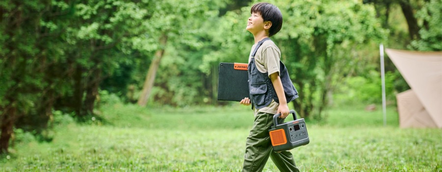 タブレットサイズに折り畳めるソーラーパネル「Jackery SolarSaga 40 mini」(収納時サイズ:252*300*20mm、重量:1.2kg)と、小型で軽量なポータブル電源「Jackery ポータブル電源 300 Plus」(サイズ:約230x155x167㎜、重量:約3.75kg)がセットになっている「Jackery Solar Generator 300 Plus」はソロ、デュオキャンプやアウトドア、テレワークなどの屋外作業にぴったりの一台。リュックに入る小型コンパクト設計のため、どこでも手軽に持ち運べます。