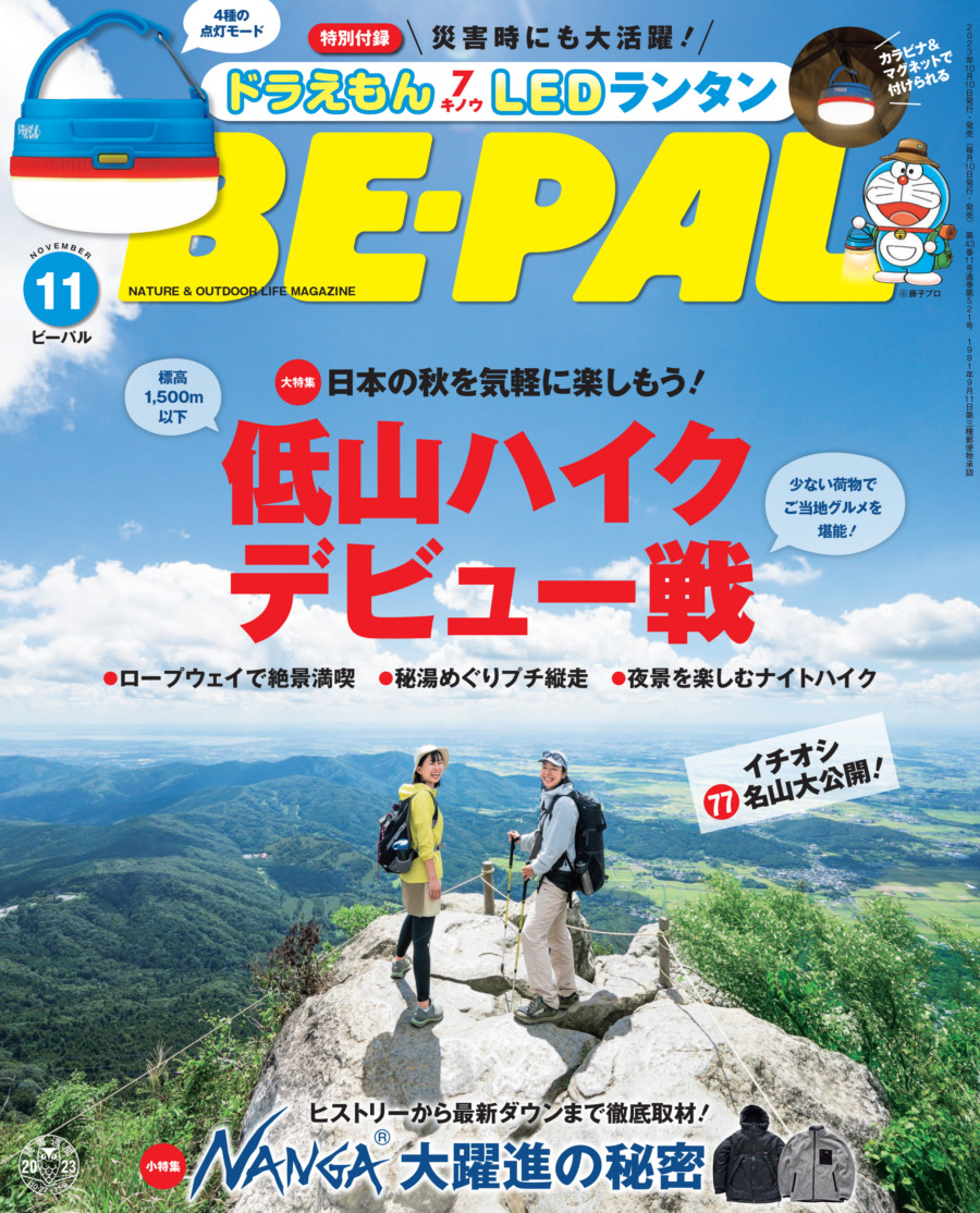 10月5日発売、BE-PAL11月号の特別付録は、キャンプはもちろん自宅や職場でも大活躍する『ドラえもん7キノウLEDランタン』。