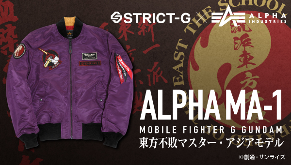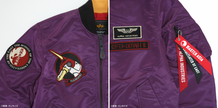 『機動武闘伝Gガンダム』方不敗マスター・アジアモデルは、正統派格闘技の流派“東方不敗”を編み出したマスタ―・アジアが、劇中着用している衣装をモチーフにしたパープルカラーベースのMA-1。