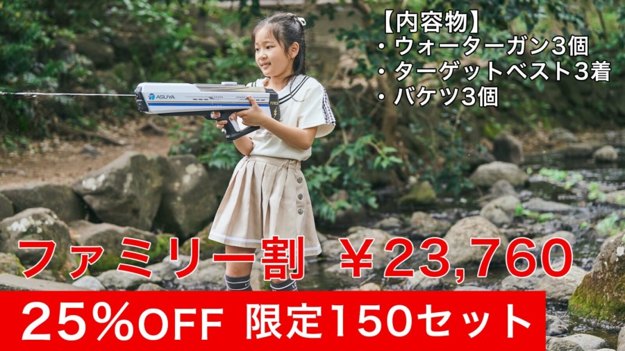 子供から大人まで夢中で遊べる革新的デザインとパワフルな機能で夏のアウトドア体験を一新する電動ウォーターガン『ASW-900』が5月27日(月)11:30よりMakuakeにてクラウドファンディングキャンペーンを開始。