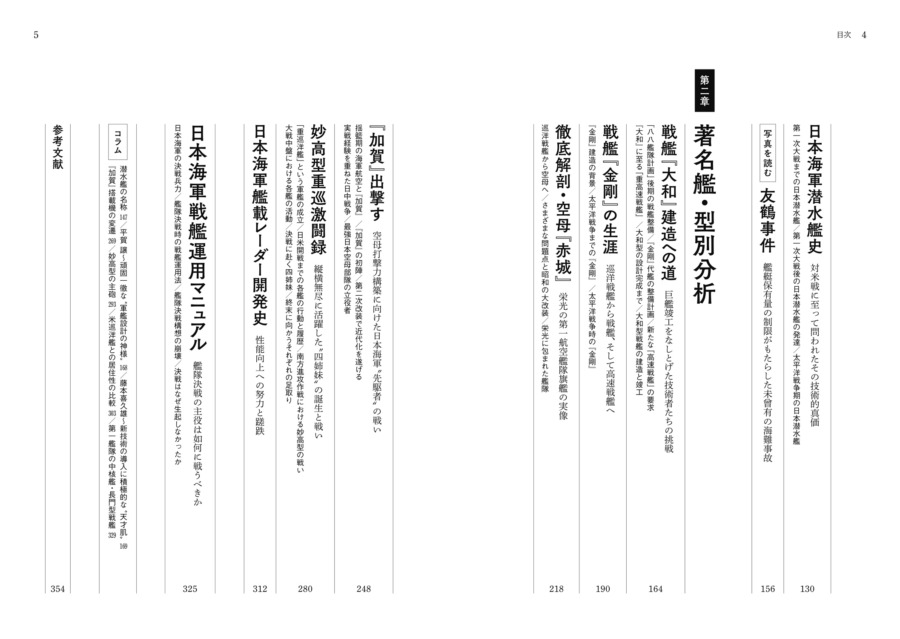 「艦種別通史」「著名艦・型別分析」の2部構成に特別記事「日本海軍 戦艦運用マニュアル」を加えた立体的かつ網羅的構成