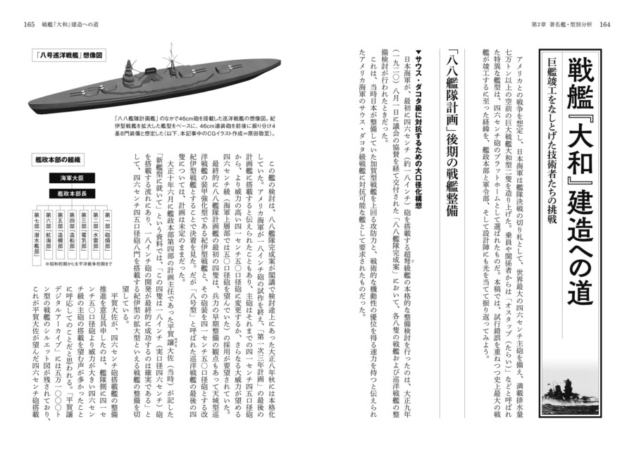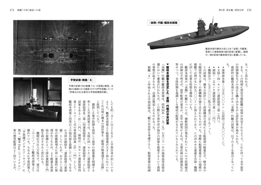 第2章「著名艦・型別分析」では、戦艦『大和』『金剛』、空母『赤城』『加賀』、妙高型重巡洋艦という著名な艦または型が、どのようなニーズから、いかに開発されたのかが論じられています。