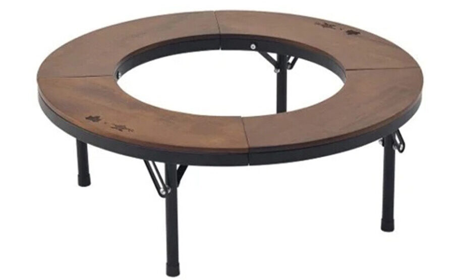 別売りの木製天板の円形テーブル、「LOGOS×ALADDIN ストーブテーブル」と組み合わせてカスタマイズも楽しめる。