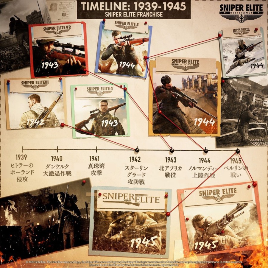 (C) 2025 Rebellion. The Rebellion name and logo, the Sniper Elite name and logo and the Sniper Elite Eagle are trademarks of Rebellion and may be registered trademarks in certain countries. Licensed to and distributed by Game Source Entertainment in Japan and Asia.