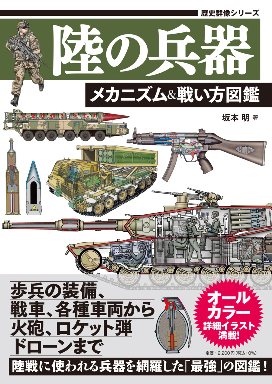 本書は兵器のカラー図解イラスト&解説の第一人者、坂本明氏がこれまで刊行してきた「最強図鑑」シリーズ(累計刷部数60万部以上)の中から、「陸戦」で用いられる兵器の記事を厳選抽出し、新規記事を大幅に加えて再構成し、判型もB6からA5に大判化して見やすくした決定版で、昨年11月に刊行した「海の兵器」の続編になります。