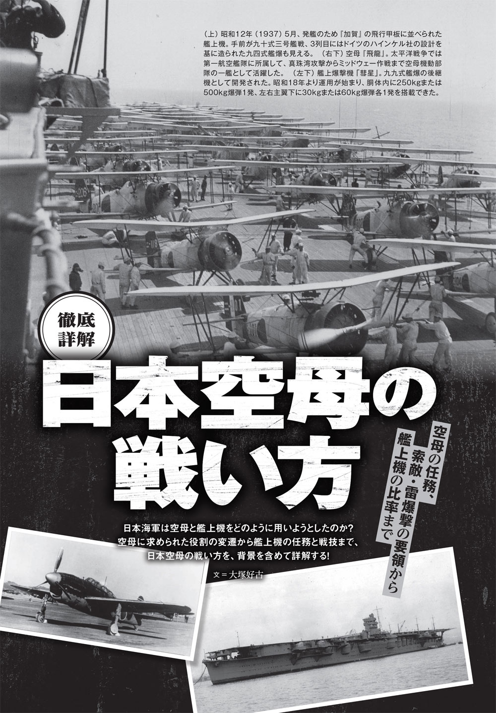 第一特集の「【徹底詳解】日本空母の戦い方」」では、文字通り、日本海軍の空母の任務と役割、戦術と戦技を詳しく紹介します。
