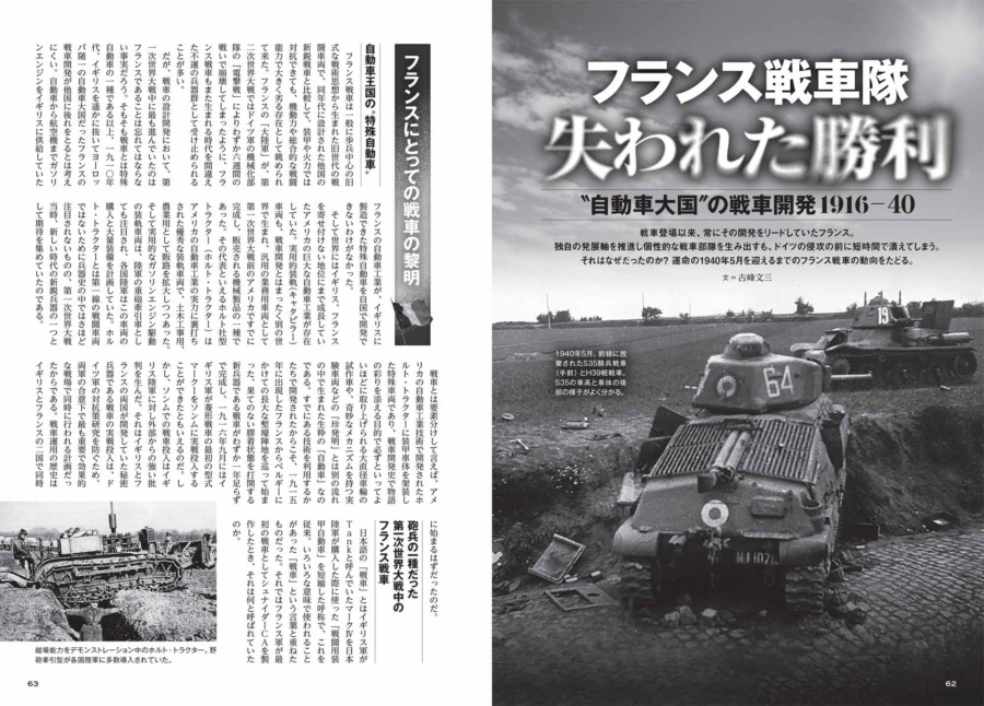 本号の第一特集は、日本海軍の空母の任務、索敵・雷爆撃などの要領から空母ごとの艦上機の搭載数と比率などを紹介する「【徹底詳解】日本空母の戦い方」、第二特集は鎌倉時代の日本を震撼させた“元寇”で幕府軍がいかにして元軍を撃退したかを戦いの経過とともに考察する「作戦分析 蒙古襲来」、第三特集は、第一次大戦中に同国初の戦車を開発してから第二次大戦中の1940年5月にドイツ軍の「電撃戦」の前にその戦車隊が崩壊するまでのフランスの戦車開発をたどる「フランス戦車隊 失われた勝利」。