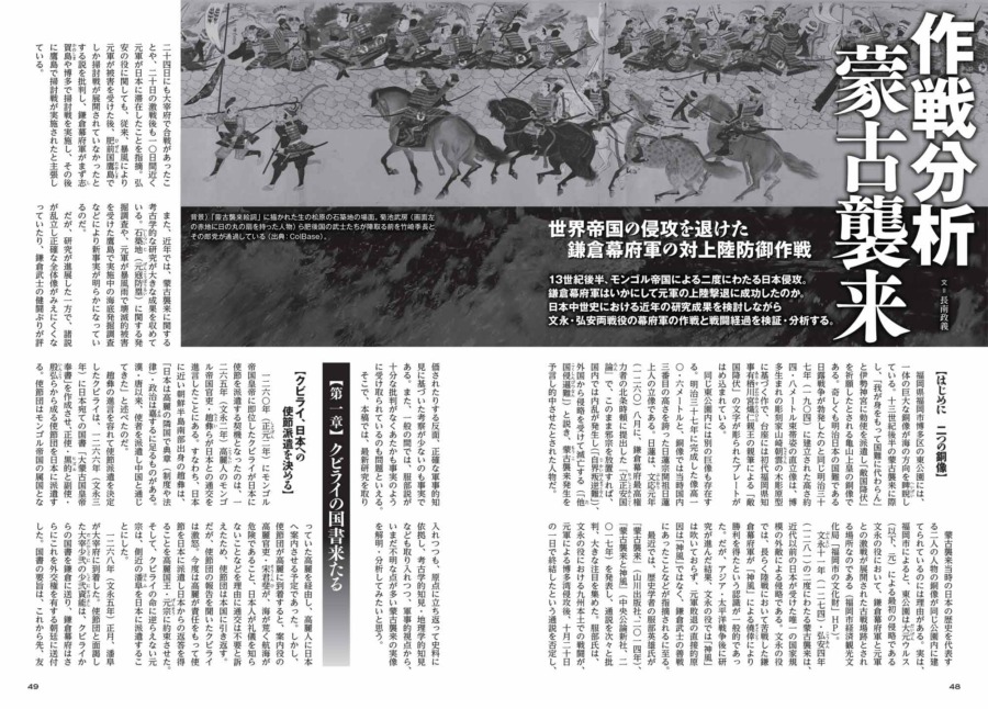 第二特集「作戦分析 蒙古襲来~世界帝国の侵攻を退けた鎌倉幕府軍の対上陸防御作戦」では、二度にわたる“元寇”における作戦・戦闘の推移を詳しく見ていくとともに、元軍の上陸作戦に対して幕府軍がいかなる作戦で勝利を収めたのか、その勝因はどこにあったのかを分析します。