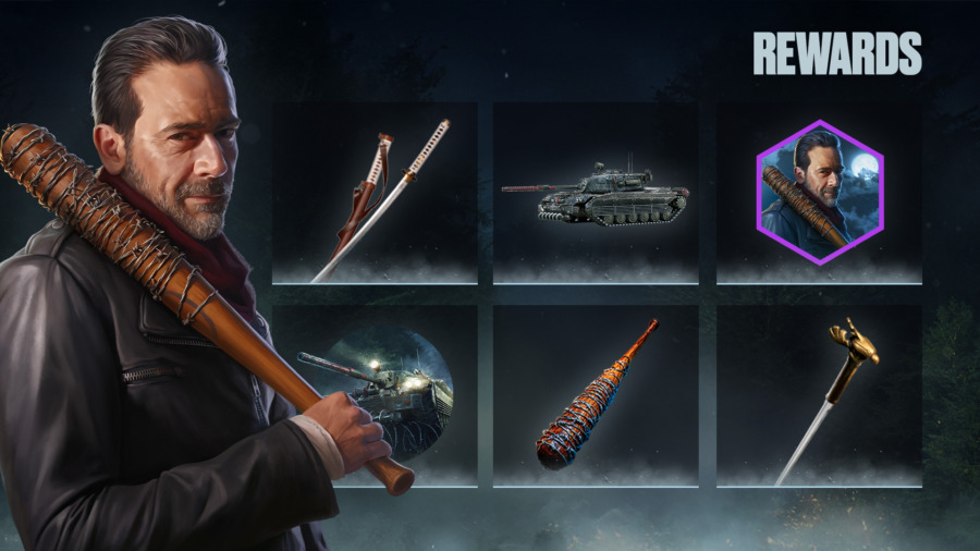 報酬には、黙示録的な世界観に合わせて設計された特別な戦車 Herdbreaker、T32用のレジェンダリー迷彩 Georgia Tracker、ダリルのクロスボウやバイクなどのコレクションが含まれ、荒廃したウォーキング・デッドの世界をイメージした多数のアイテムが登場します。