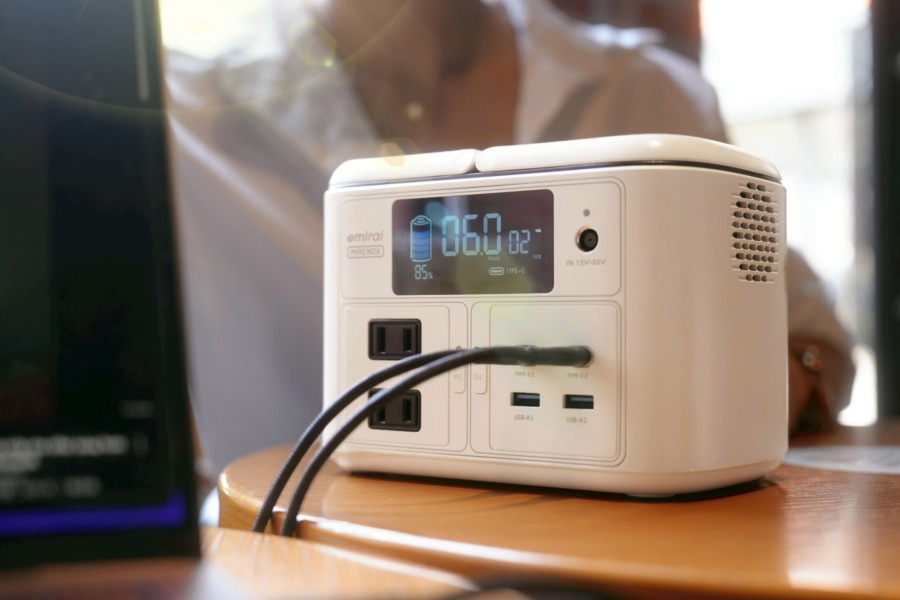 本製品は、片手で持ち運べるコンパクトさと、スマートフォン・ノートPC・小型家電に対応する 192Whの容量を両立した小型ポータブル電源です。