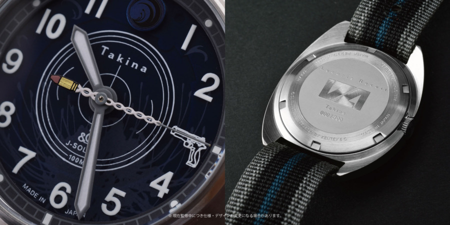 文字盤は、たきなのキャラクターカラーをイメージしたブルーを採用。