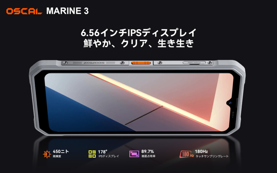 OSCAL MARINE 3は、6.56インチIPSディスプレイを搭載し、鮮やかで自然な色彩を再現。
