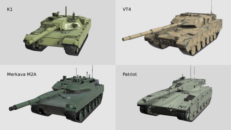 K1:高い機動力とバランスの取れた性能を誇り、あらゆる戦況に適応可能な主力戦車。